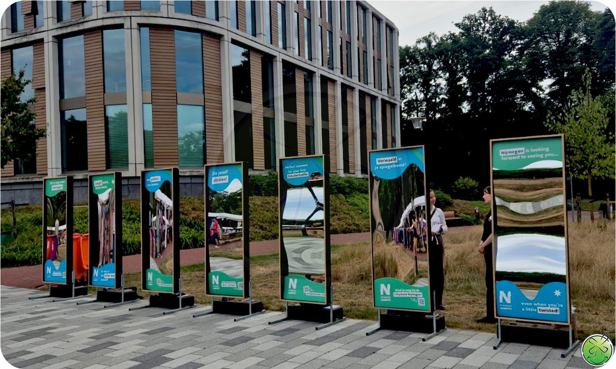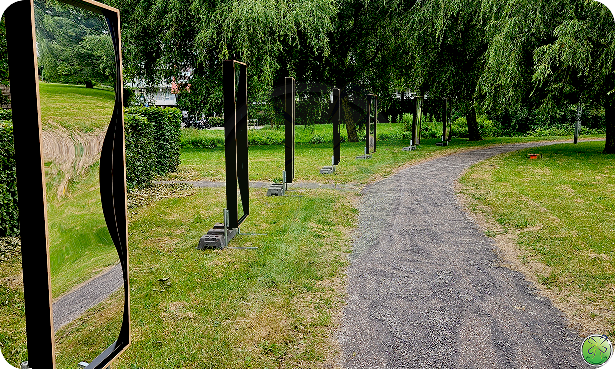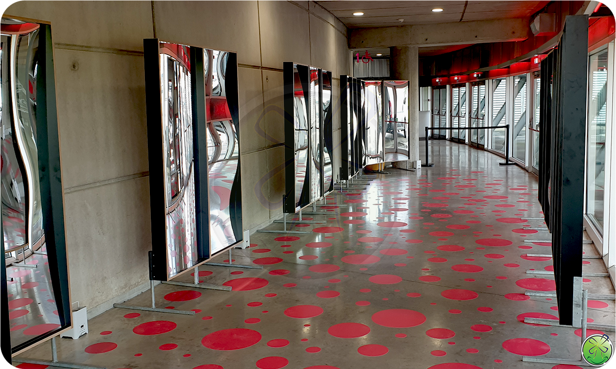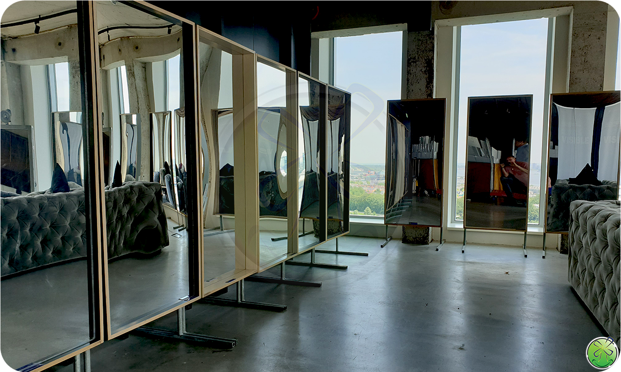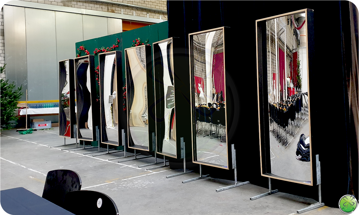 Lachspiegels maar dan groter! 244 cm hoog. Op de vrijstasteunen zelfs 268cm! Indrukwekkende lachspiegels die impact geven aan uw evenement!