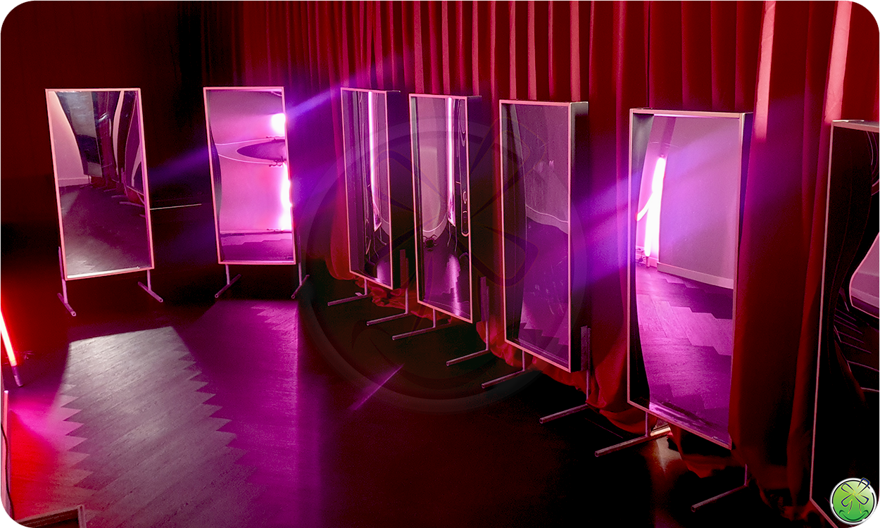 Deze wel 5 meter lange rechte spiegel is ideaal voor dansoptredens. De spiegel is makkelijk verplaatsbaar en geeft een extra dimensie aan het optreden.